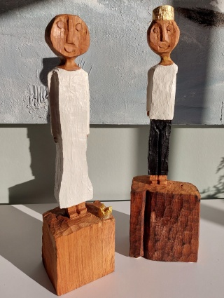 Der Bonner Diakon Ralf Knoblauch beschäftigt sich ebenfalls seit Jahren mit dem Thema der Menschenwürde und hat als Sinnbild die "Könige" gefunden, die er in einem meditativen, schöpferischen Prozeß aus alten Balken und Fundhölzern heraus arbeitet.