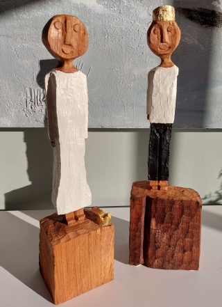 Der Bonner Diakon Ralf Knoblauch beschäftigt sich ebenfalls seit Jahren mit dem Thema der Menschenwürde und hat als Sinnbild die "Könige" gefunden, die er in einem meditativen, schöpferischen Prozeß aus alten Balken und Fundhölzern heraus arbeitet.